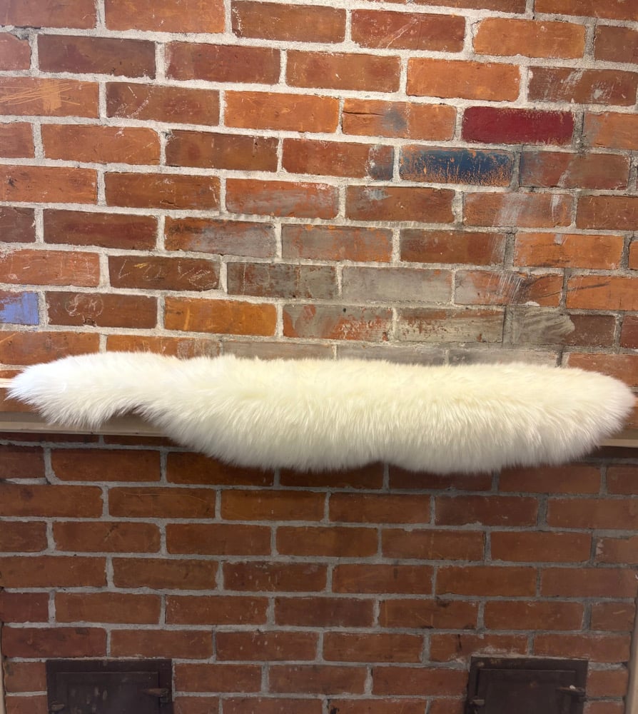 Note: measured across top wool side, may be slightly larger than suede pelt on other side. Measurements include some wool overhang on all sides to show spread and general size of piece.